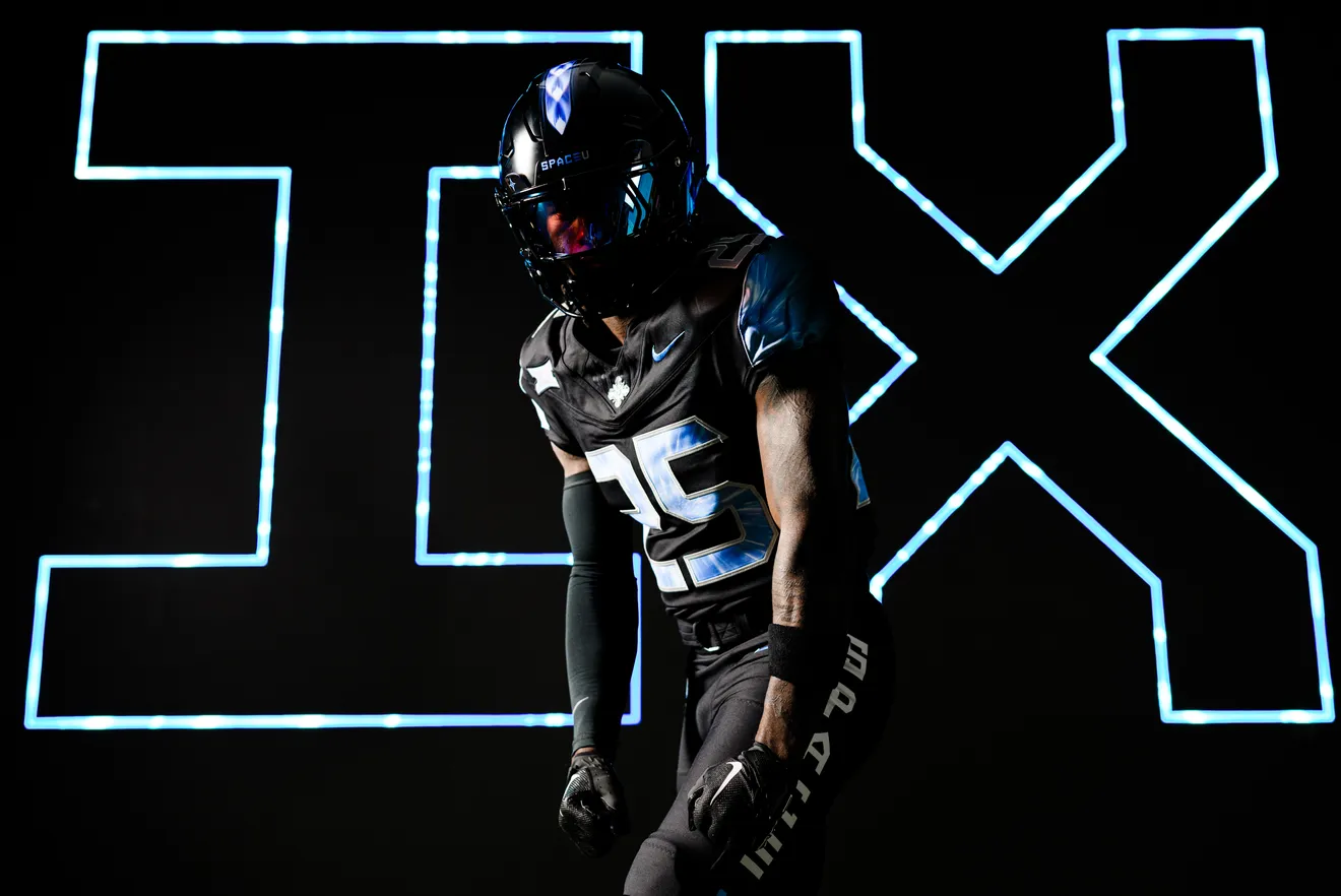 A Universidade da Flórida Central (UCF) revelou a nova versão de seus uniformes com temática espacial para o tradicional Space Game, que será realizado em 7 de novembro, quando os Knights enfrentam Houston no Acrisure Bounce House Stadium. Batizado de “Mission IX: HyperSpace”, o visual presta homenagem às pesquisas de hipersônica e propulsão espacial conduzidas pela universidade em parceria com a Força Aérea dos Estados Unidos. O tema reflete o trabalho do Centro HyperSpace da UCF, que estuda tecnologias capazes de impulsionar aeronaves e veículos espaciais a velocidades entre Mach 6 e Mach 17, ou seja, de seis a dezessete vezes a velocidade do som.